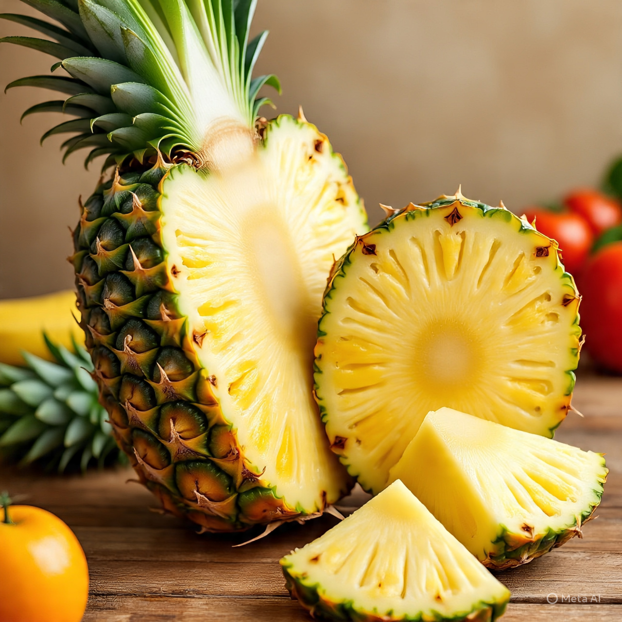 It is a tropical, perennial herbaceous plant in the Bromeliaceae family known for producing a large, edible, multiple fruit. It is characterized by its, fibrous, juicy yellow flesh, a spiky rind, and a leafy crown. Native to South America, it is highly valued for its sweet, tangy flavor, and contains bromelain, an enzyme that aids in protein digestion.
